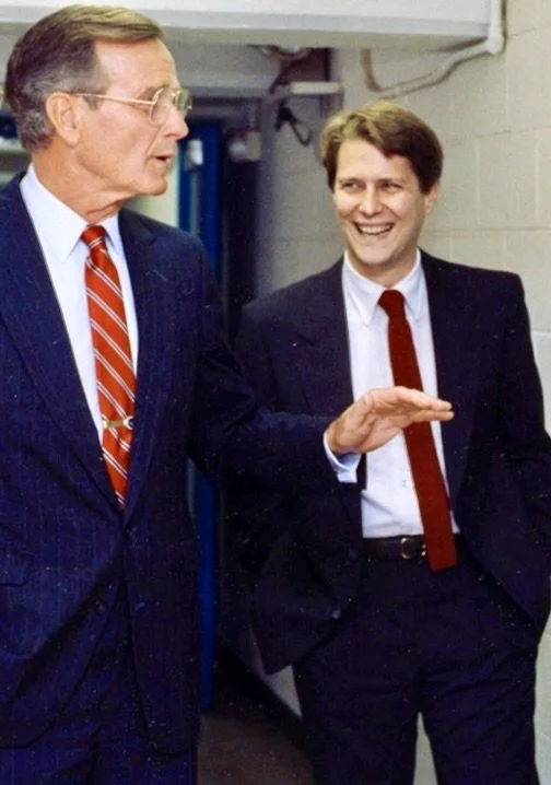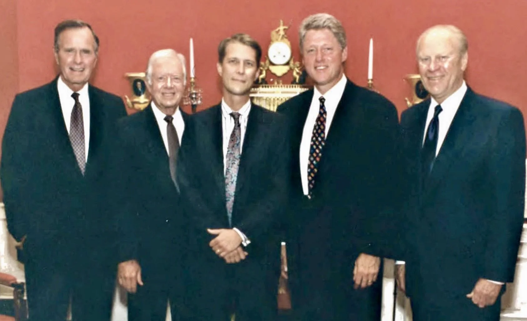 Chris with Presidents Bush, Carter, Clinton, and Ford at the White House on September 13, 1993 — a moment that reflects his years of service in the Executive Residence across three presidential administrations.
